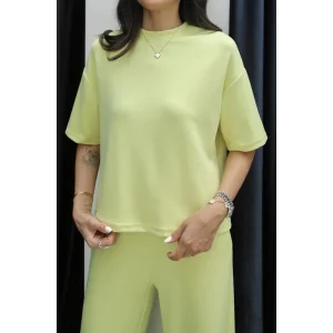 Pantolon yırtmaçlı elbise ikili triko takım yeşil elf