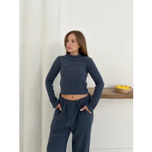 Gömlek Yaka Fitilli Salaş İkili Takım Buz Mavisi T4300