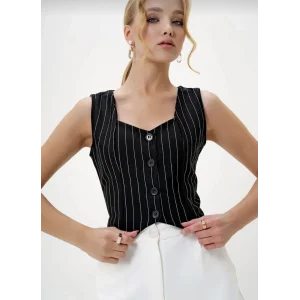 Çizgili krep düğmeli yelek siyah s3395