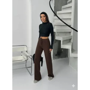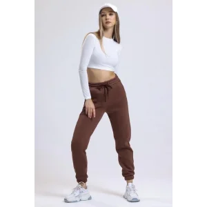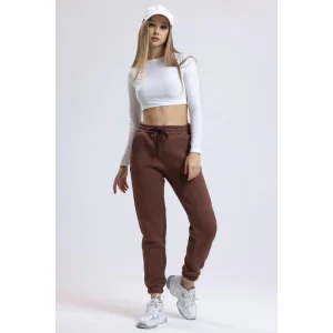 3 iplik şardonlu paça lastikli eşofman kahve is001