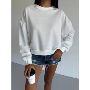2 iplik bisiklet yaka sweat beyaz f2339