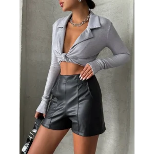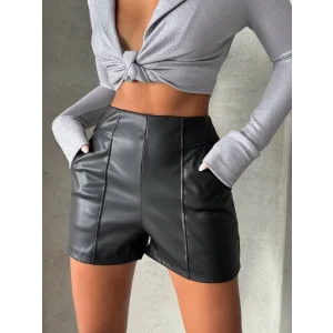 Çıtçıtlı siyah köprü tüvit şort yeşil