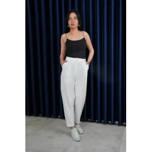 Pileli keten pantolon s255046