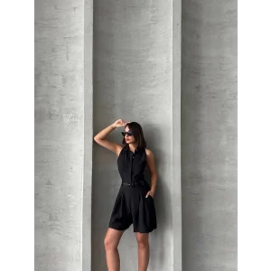 Kuşaklı şortlu tulum