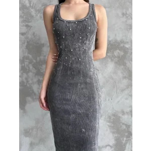 Taşlı askılı elbise