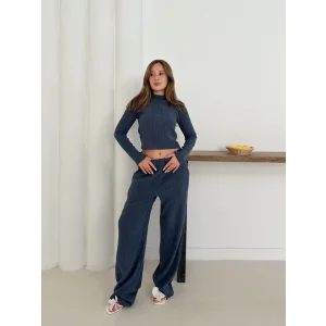Gömlek yaka kaplama düğmeli takım lacivert st265866