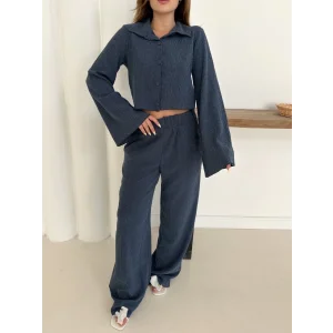 Gömlek yaka kaplama düğmeli takım antrasit st265866