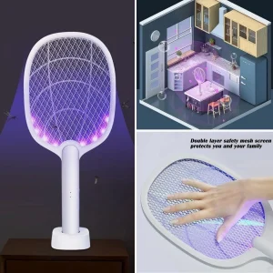 Şarjlı Sinek Öldürücü Masaüstü Standlı,mor Işık Sinek Kovucu Raket 5w