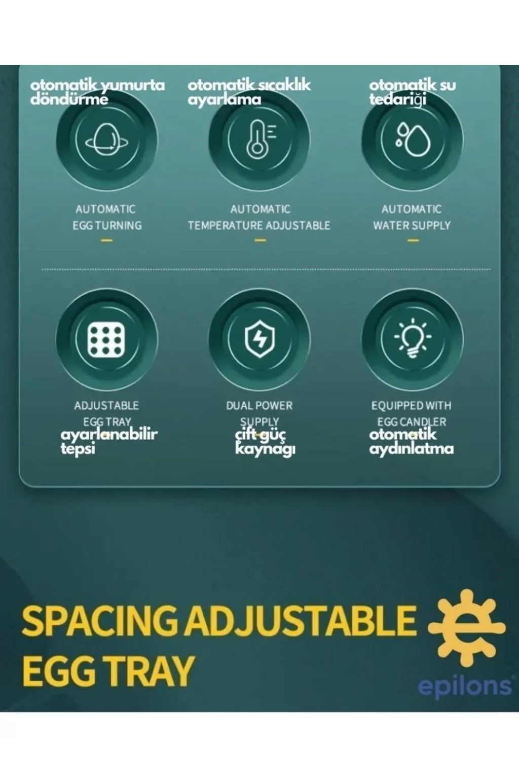 Özellikler:umurta kuluçka makinesi, yumurtaları her iki saatte bir döndüren otomatik bir yumurta turner ile donatılmıştır. Yumurta turner'ı istediğiniz zaman başlatabilirsiniz.