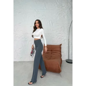 3 iplik şardonlu palazzo pantolon füme md64