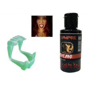 Fosforlu Çift Damak Takma Vampir Dişi ve 50 gr Tiyatro Kanı Set