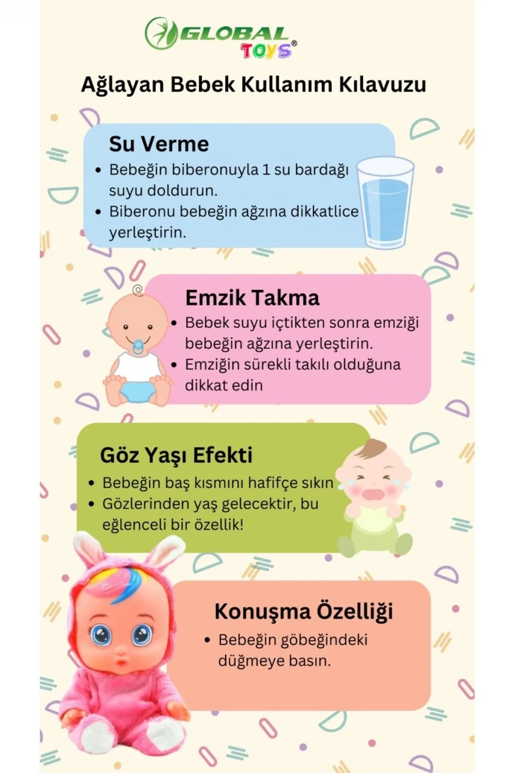 ✔ Ağlayan Bebek Fonksiyonu – Bebeği besleyin, emziğini takın, gözlerinden yaş aksın.