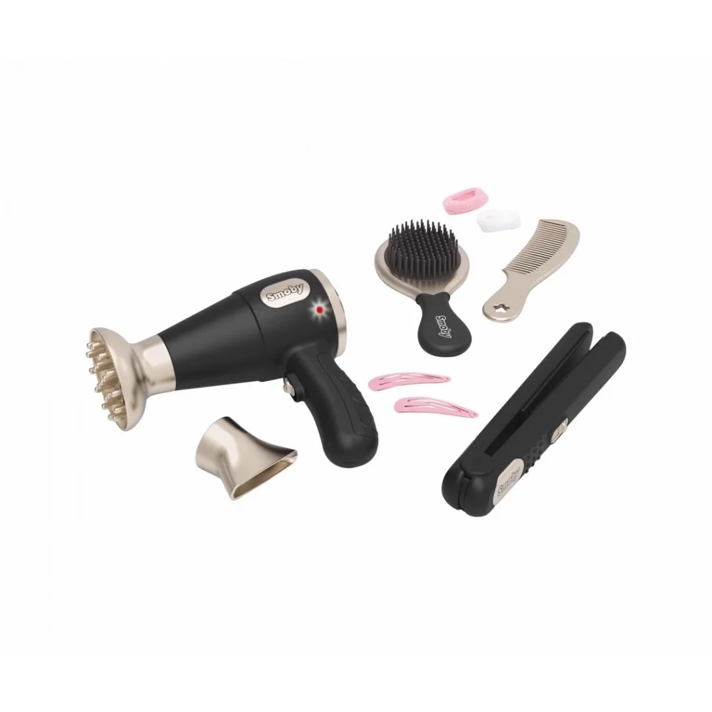 Smoby Saç Bakım Seti, gerçekçi ses ve ışık efektlerine sahip saç kurutma makinesiyle çocuklara eğlenceli bir saç tasarım