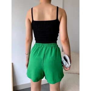 Armalı keten şort yeşil s251003
