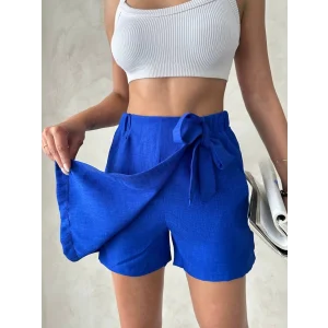 Armalı keten şort saks mavisi s251003