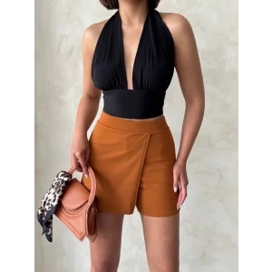 Kapaklı şort etek camel s208