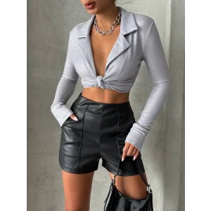 Tokalı deri şort siyah s24444
