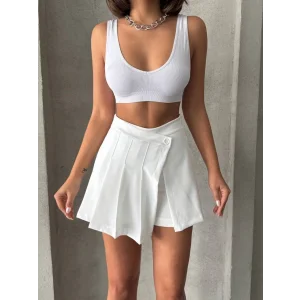 Piliseli düğmeli şort etek beyaz s25813