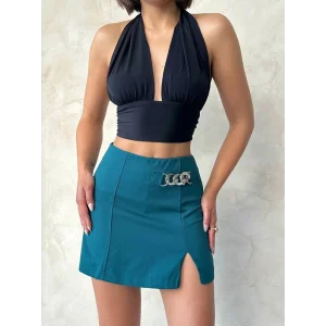 Zincirli şort etek petrol yeşili s24676