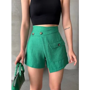 İki düğmeli pileli şort