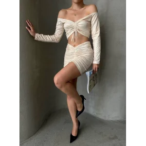 Gömlek Yaka Fitilli Salaş İkili Takım beyaz T4300