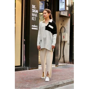 Pencereli detaylı alt üst takım gri w3864