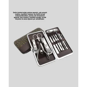 Özel Deri Çantalı 12 Parça Manikür Pedikür Bakım Seti Paslanmaz Çelik
