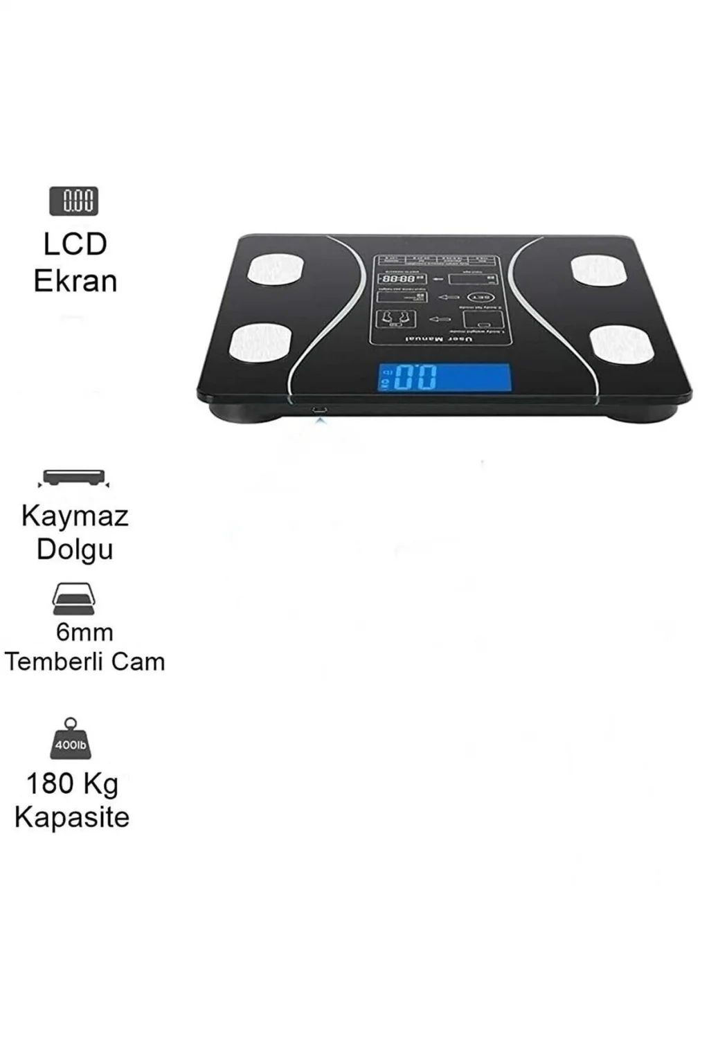 Dijital Tartı Baskül Yağ Su Kas Vücut Kitle Endeksi Kilo Ölçer Tartı Siyah Led Panel