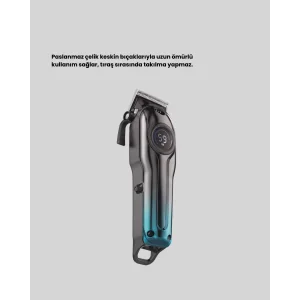 Profesyonel Saç Kesme Makinesi – 2000 mAh Şarjlı, LCD Ekranlı
