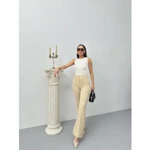 3 iplik şardonlu bisiklet yaka sweatshirt bej