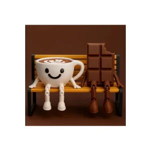Çok Sevimli Bank Üzerinde Çikolata Ve Espresso Biblo Seti / 3'lü Dekoratif Figür Hediyelik Çeyizlik