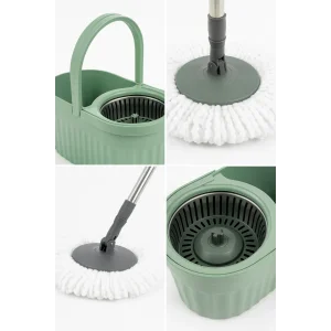 Otomatik Mop Seti Paspas ve Sıkma Kovası, 360° Döner Başlıklı Mikrofiber Yer Temizleme Yeşil