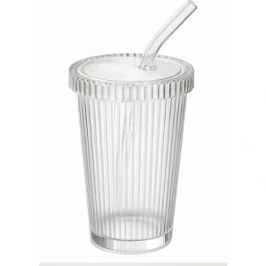 32 Adet Latte Kapaklı Pipetli Kristal Desen Fenomen Bardak Soğuk Kahve, Smoothie, Içecek Bardağı
