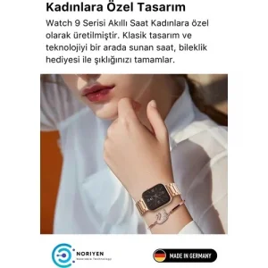 Yeni Nesil 3 Kordonlu Kadın Akıllı Saat Spor ve Sağlık Sensörlü Watch 9 Series Tasarım Saat Pembe