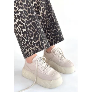 Emwa Bej Cilt Bağcıklı Spor Ayakkabı