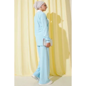 Gömlek Yaka Fitilli Salaş İkili Takım Buz Mavisi T4300