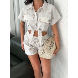 Gömlek şort keten takım s1052-1056