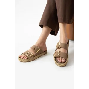 Loera Vizon Nubuk Çift Tokalı Terlik