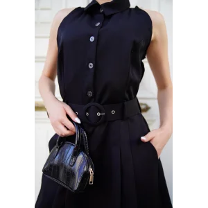 Gömlek yaka kemerli elbise siyah s255061