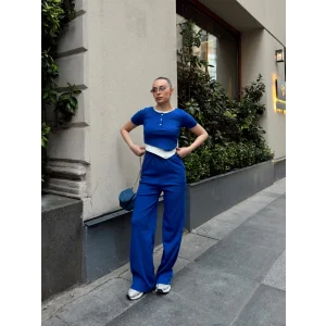 Düğme yakalı saks alt üst takım s3943