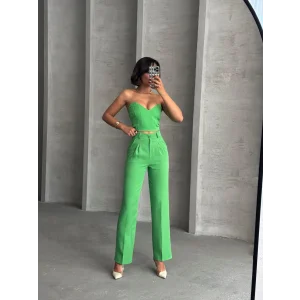 Palazzo pantolonlu alt üst takım yeşil
