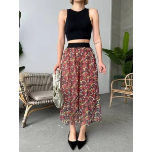 Baskılı astarlı uzun etek