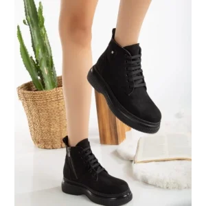 Emwa Siyah Cilt Bağcıklı Spor Ayakkabı