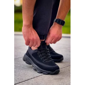 KB-707 Kuback Siyah Süet Siyah Yüksek Taban Bağcıklı Günlük Erkek Ayakkabı