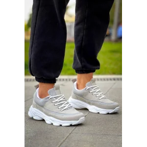 Chris Beyaz Cilt Siyah Detaylı Bağcıklı Spor Ayakkabı