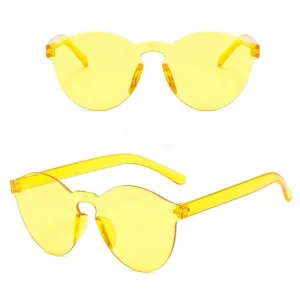 Sert Mika Oval Şekilli Çerçevesiz Sarı Gözlük Retro Parti 5x14 cm