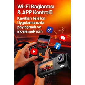 Wifi 1080p Araç içi 3 Kameralı Lcd Ekranlı Gece Görüşlü , G-sensör , Geri Görüş Kamera