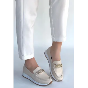 Lossa Bej Süet Kemerli Babet Ayakkabı